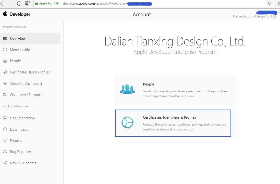 登錄后的界面如下圖所示,操作:點擊Certificates, Identifiers & Profiles進入管理界面(圖四)。