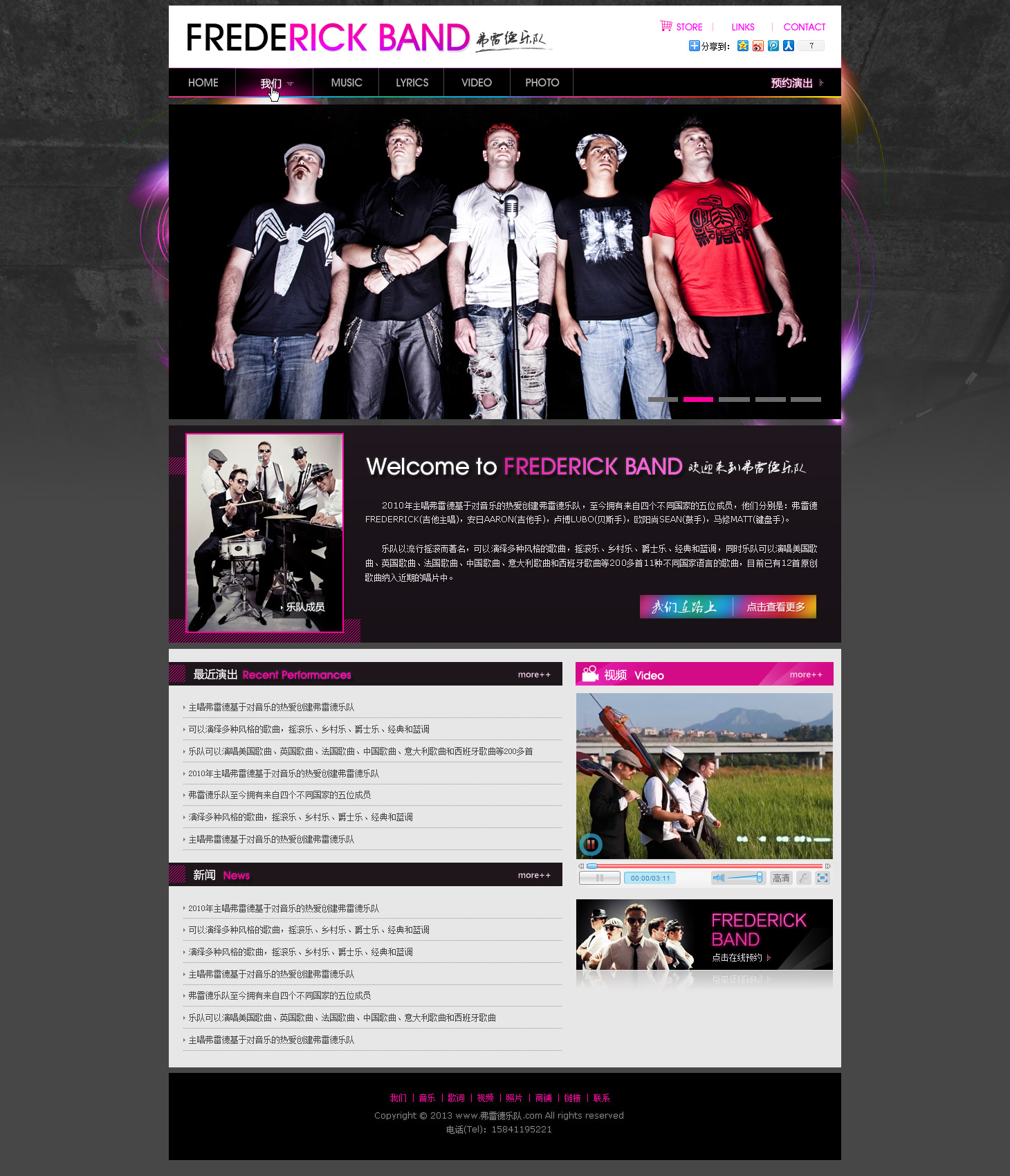 弗雷德樂隊(duì)(FLD5)2009年2月由主唱弗雷德組建,樂隊(duì)的音樂風(fēng)格以Pop rock流行搖滾為主,原創(chuàng)作品:《快樂天堂》《夢回金戈鐵馬》《Best Day of My Life》《中國向前走》等,代表作品:《因?yàn)閻矍椤贩ㄕZ版等
